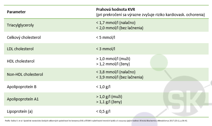 Pre úplnosť uvádzame aktuálne prahové hodnoty KVR pre jednotlivé parametre lipidového metabolizmu: