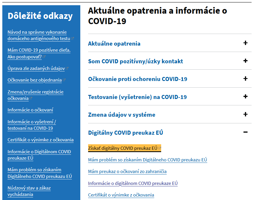 Postup pre získanie digitálneho COVID EÚ preukazu