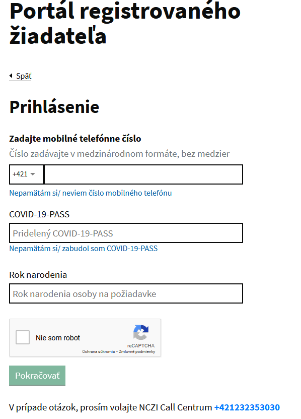 Odkaz Vás presmeruje na web NCZI https://covidforms.nczisk.sk/